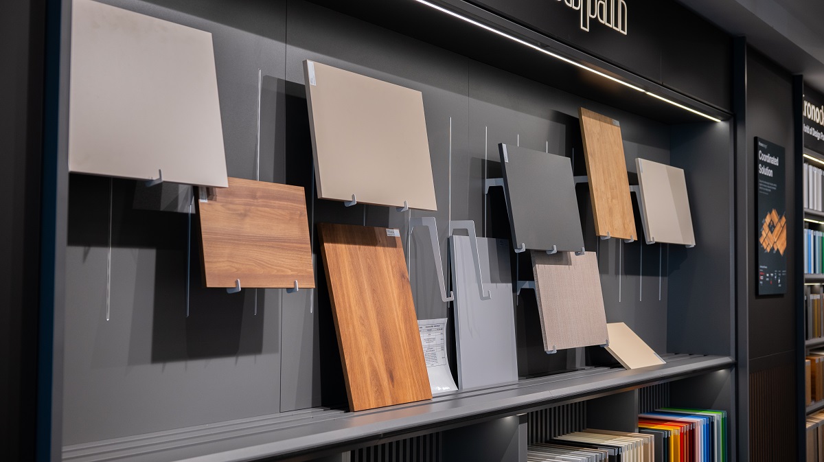 „До неотдавна клиентите виждаха продуктите като тесте с малки мостри, което затрудняваше донякъде избора им. В новия ни „Дизайн Център“ проектантите на „Кроношпан“ креативно имплементираха нашите продукти, създавайки авторски мебели, разкриващи различни възможности за съчетания и форми“, разясняват от „Ламина“.