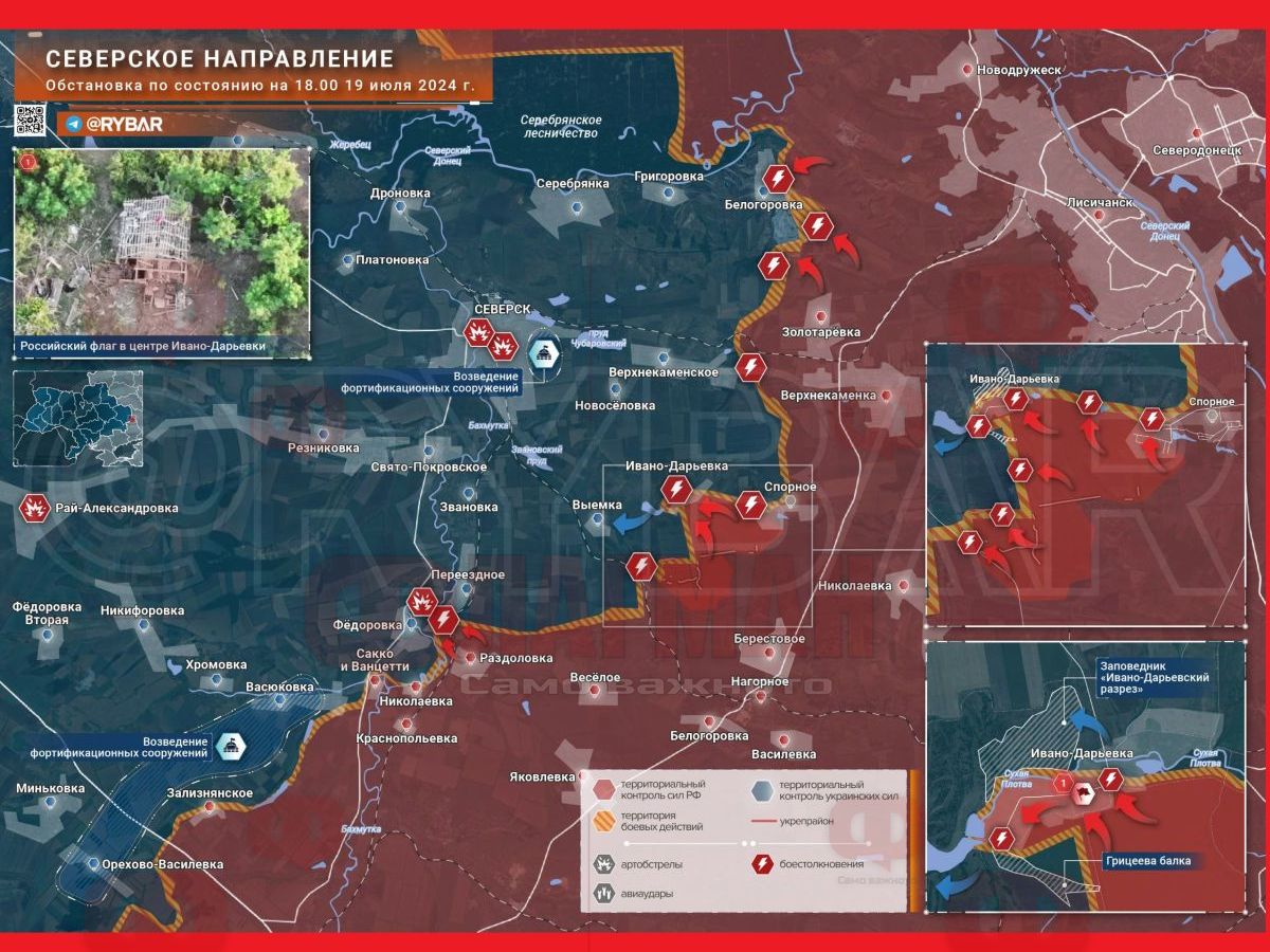Руското знаме вече се вее над Ивано-Дариевка. Превземането на селището дойде като гръм от ясно небе с оглед на това, че до този момент в района досега не можеше да се говори за висока интензивност на нападенията, коментира военният анализатор Борис Рожин.