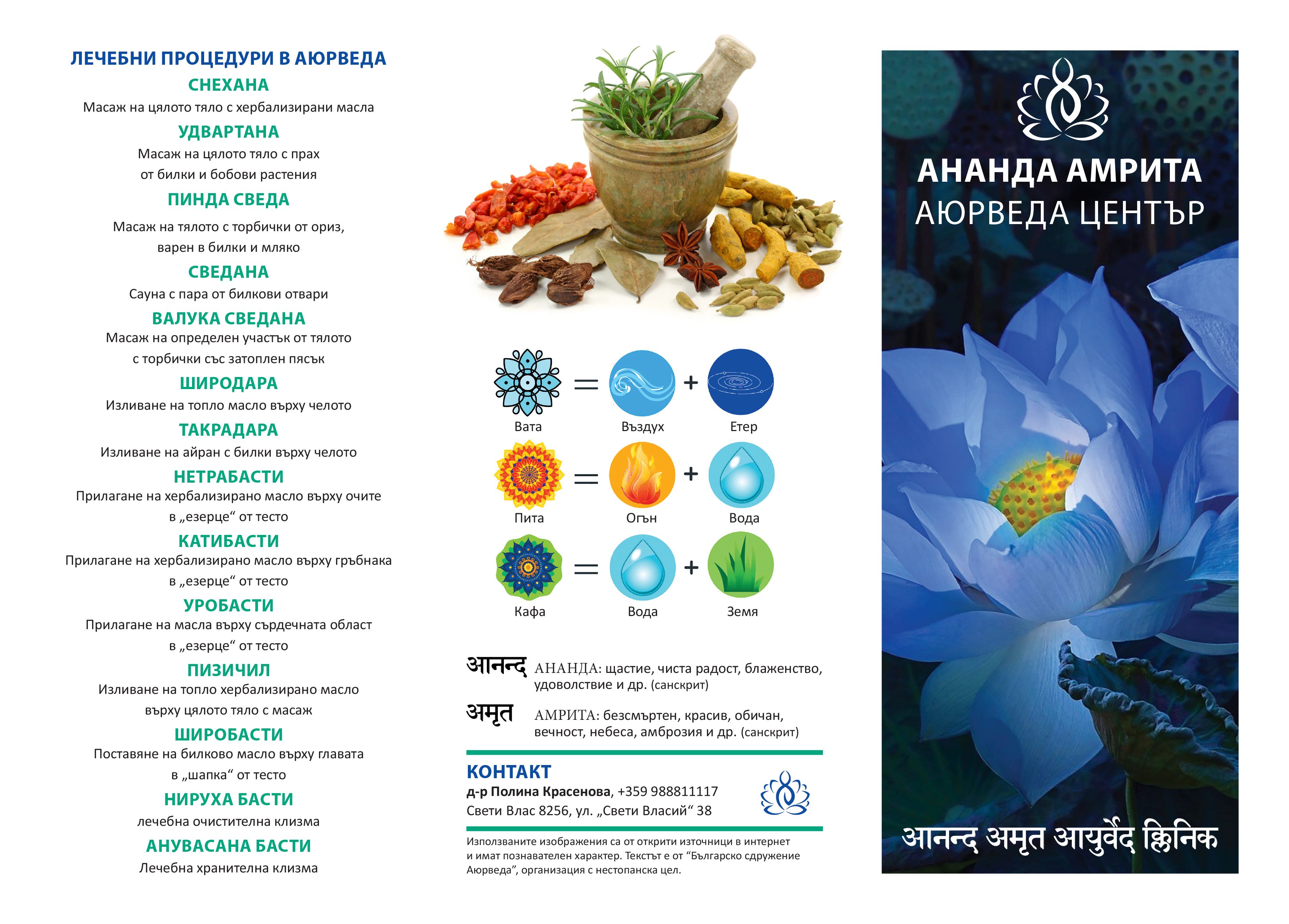 „Аюрведа е мидицинска система прилагаща холистичен подход към здравето и живота. Тя работи с личостта на пациента, не с неговото заболяване. По този начин се създава персонален подход към терапията на всеки пациент.