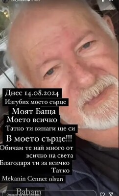 "Изгубих моето сърце. Моят баща. Моето всичко. Татко, ти винаги ще си в моето сърце. Обичам те най-много от всичко на света. Благодаря ти за всичко", написа той в Инстаграм и помести снимка на своя създател.