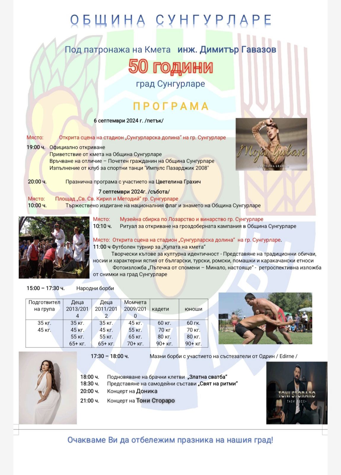 Сунгурларе отбелязва своята 50-ата годишнина от обявяването си като град тази седмица с пищна програма