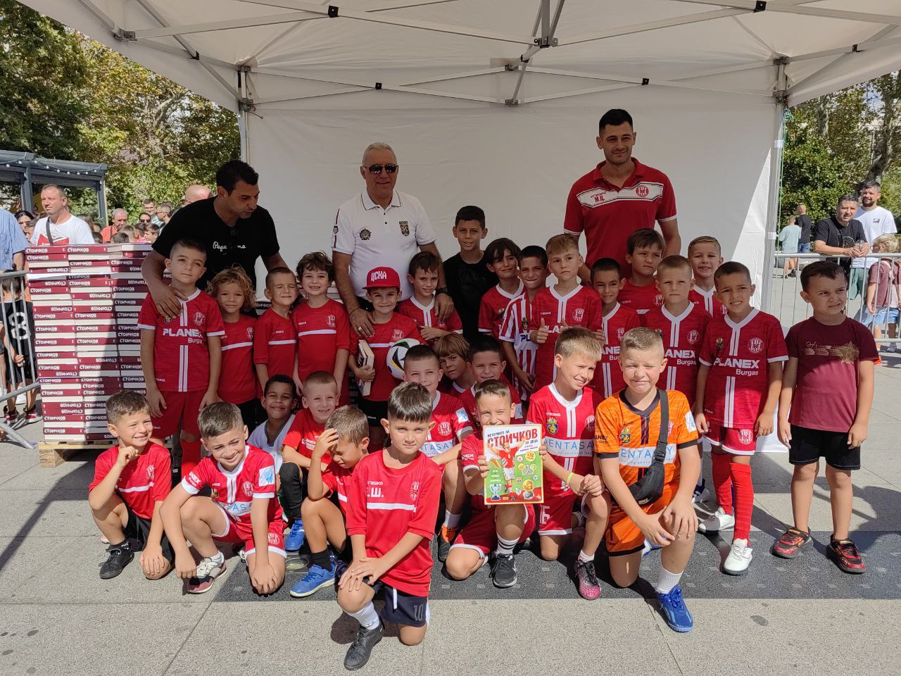 Най-голямата ни футболна легенда Христо Стоичков и TriA City Centre отново подариха на бургаските фенове спортен празник. Носителят на Златната топка се появи точно в 11 часа на централния площад "Тройката" пред търговския център, където се провежда футболен турнир с участието на малчуганите от бургаските школи.