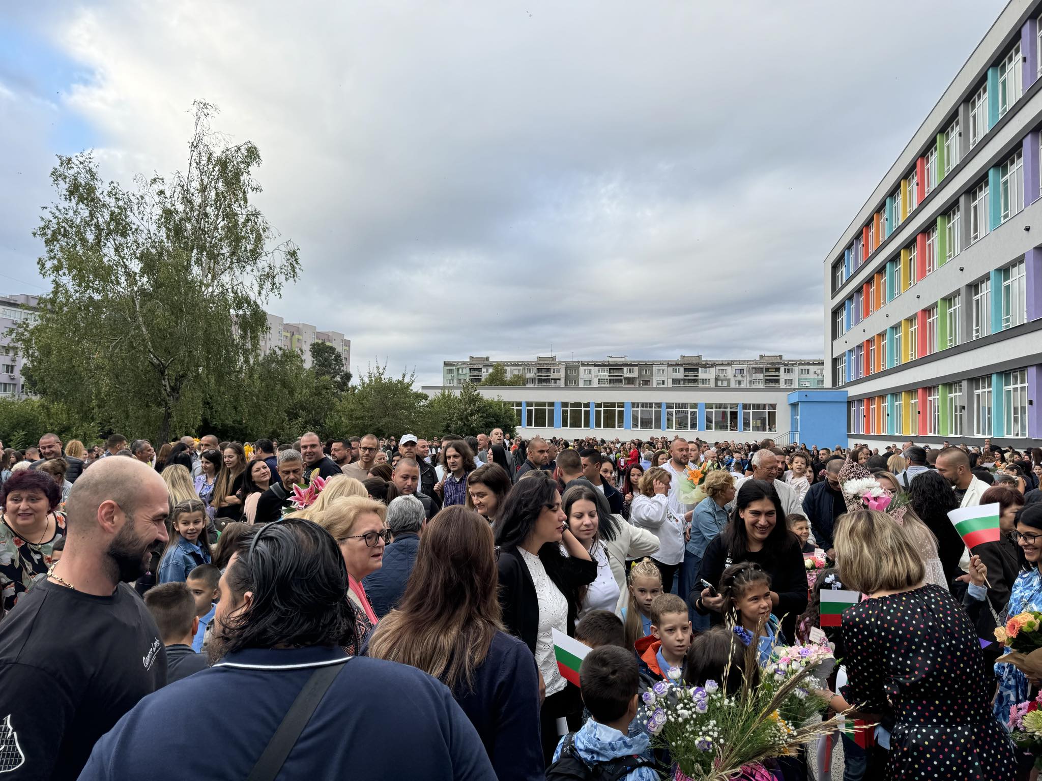 Точно в 08:30 часа би първия звънец за около 1000 ученици, които днес ще прекрачат прага на сградата. По време на тържествената церемония прозвуча химнът на България, а знаменосците издигнаха флаговете, с което отбелязаха началото на учебната 2024/2025 г.