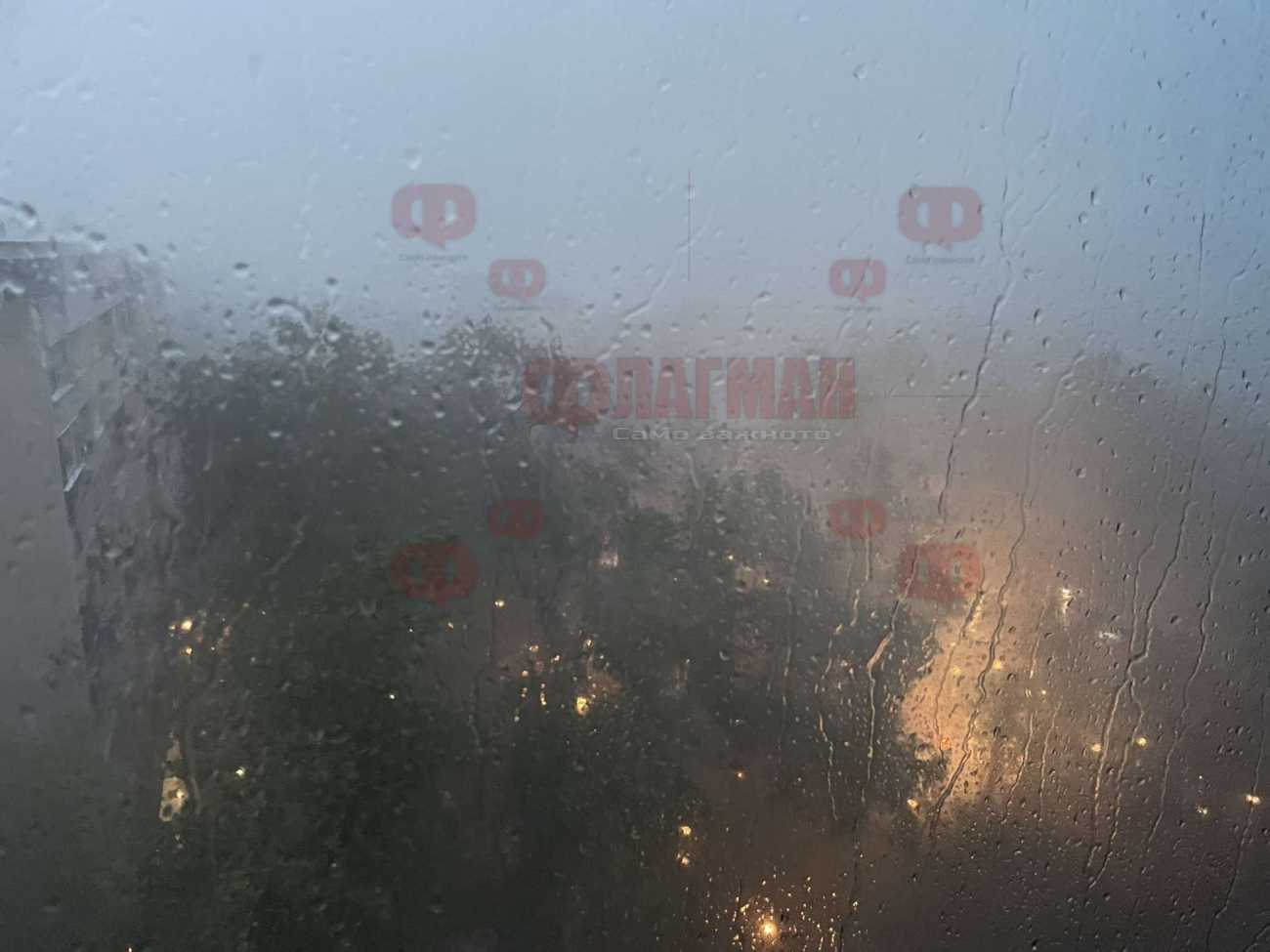 Улици на Бургас заприличаха на реки след проливния дъжд, който се изсипва над града. Небето над морския град притъмня заради черните злокобни облаци.