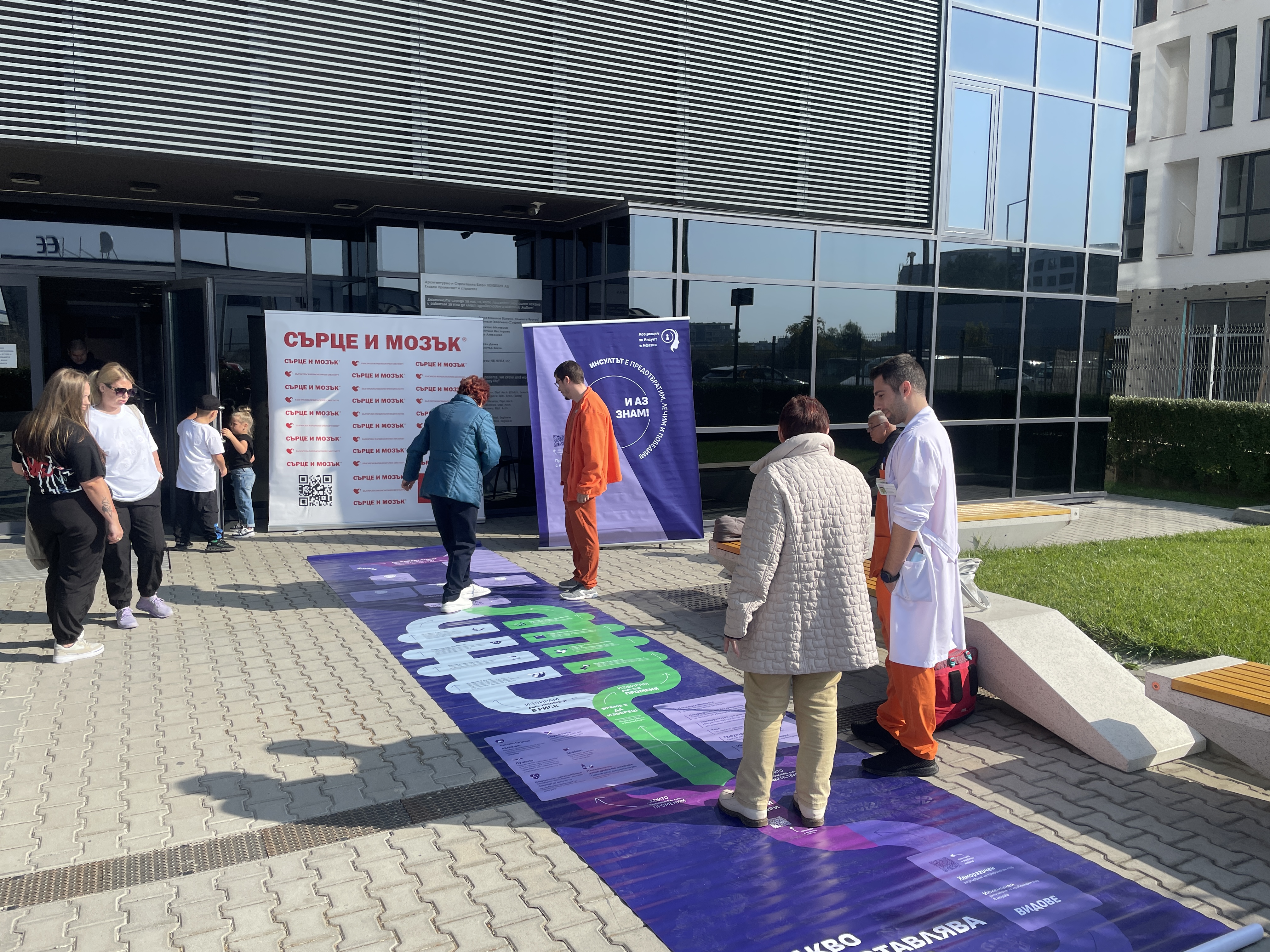 Кампанията стартира днес със специално поставени пътеки, които „ще преведат“ пациентите и техните близки през симптомите на инсулта, а специалистите от ,Сърце и Мозък’ в Плевен и Бургас ще предоставят повече информация относно заболяването. Младите лекари – специализанти от клиниката по неврология, са на място, за да отговорят на всички въпроси на гражданите и дадат съвети за превенция. При необходимост, те ще бъдат насочени към съответните специалисти. Още със старта на кампанията е регистриран огромен интерес, затова инициативата ще продължи и в следващите дни.