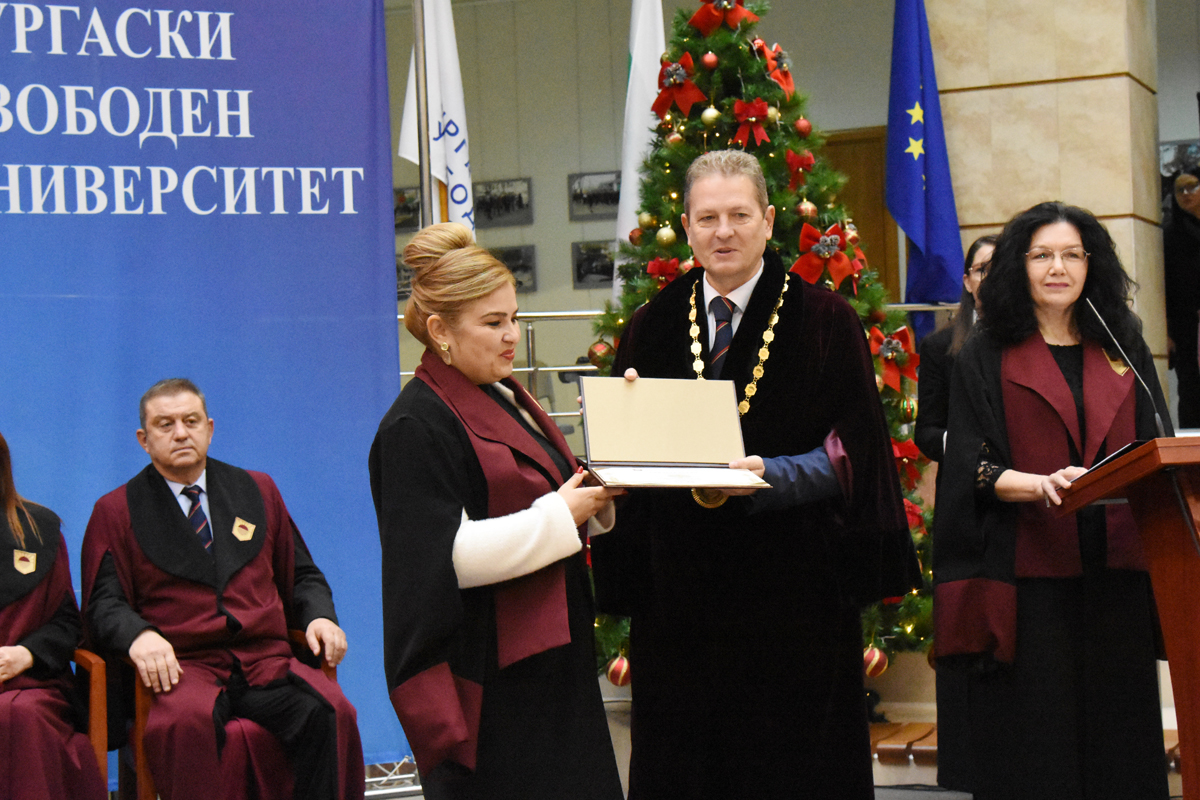 Със свидетелство за по-висока академична длъжност беше удостоена Емине Хасан Илияз – доцент по Право (Международно частно право). Документ за присъждане на образователна и научна степен доктор получи Ася Николаева Тороманова – Граждански процес.