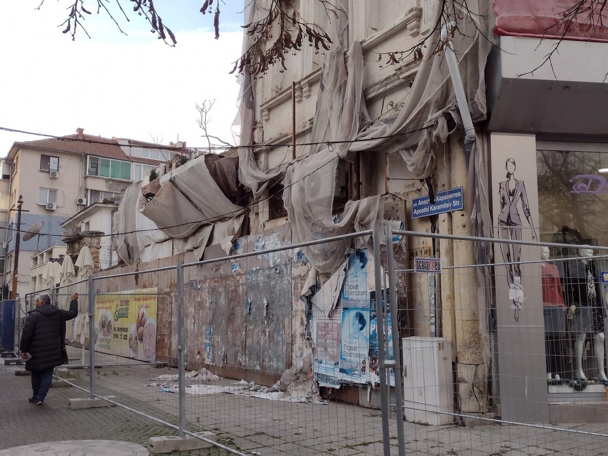 Община Бургас предприе спешни мерки по обезопасяването на рушаща се сграда. Само преди дни от фасадата са паднали няколко големи парчета. Мястото обаче е изключително оживено, от тук минават много хора и за да не се стигне до тежък инцидент се наложи част от ул. „Апостол Карамитев“ да бъде заградена.