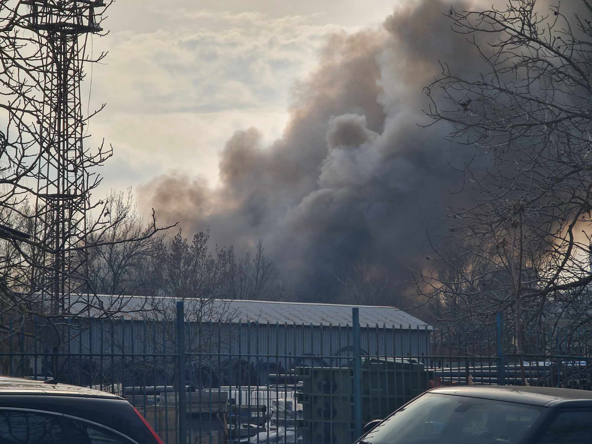 Eпицентърът е в района на ул."Търговска". Според непотвърдена информация гори склад за рециклиране на отпадъци, а живущите от блок 18 са чули мощни взривове преди минути.