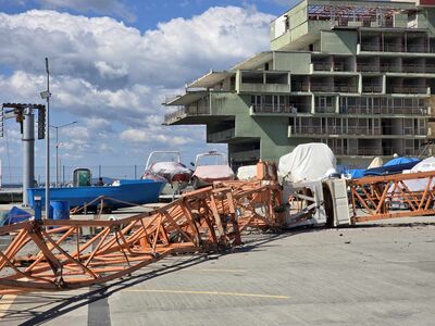 Ексклузивни кадри с дрон от падналия кран в Поморие (ВИДЕО)