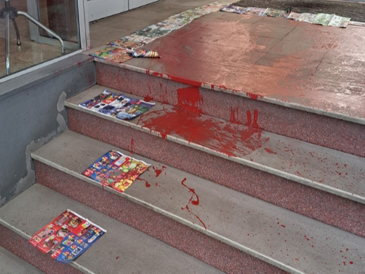 Червена боя на входа на Министерството на културата, има задържан