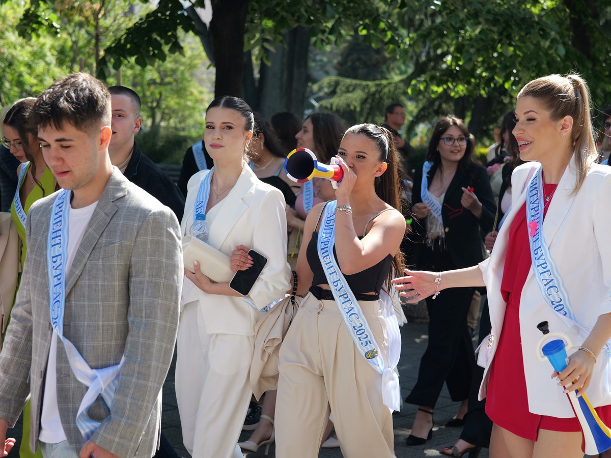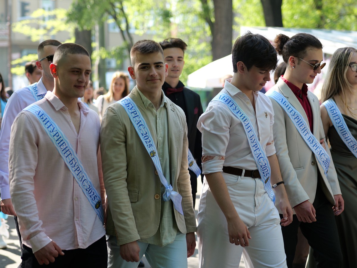 Бургас показа как една добра идея може да прерасне в стойностна традиция. Днес, за втора поредна година, в морския град се проведе Парад на зрелостниците – празнично шествие, което обедини всички училища и десетки випуски от Випуск 2025 в един емоционален и величествен празник. Това събитие е уникално за България – няма друг град в страната, където всички абитуриенти излизат заедно на парад, ръка за ръка, за да споделят вълнението и гордостта от края на своето средно образование.