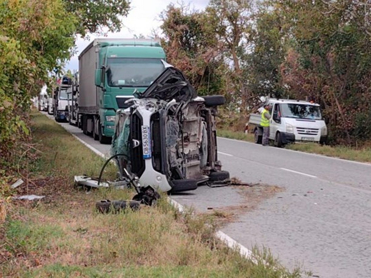Тежката катастрофа затвори пътя Русе-Бяла в участъка между двата разклона за Две могили по-рано днес. Според очевидци и шофьора на тира, фирменият автомобил "Дачия" на два пъти е навлязъл в насрещното движение. При инцидента е била засегната и трета кола – "Мазда" с румънска регистрация.