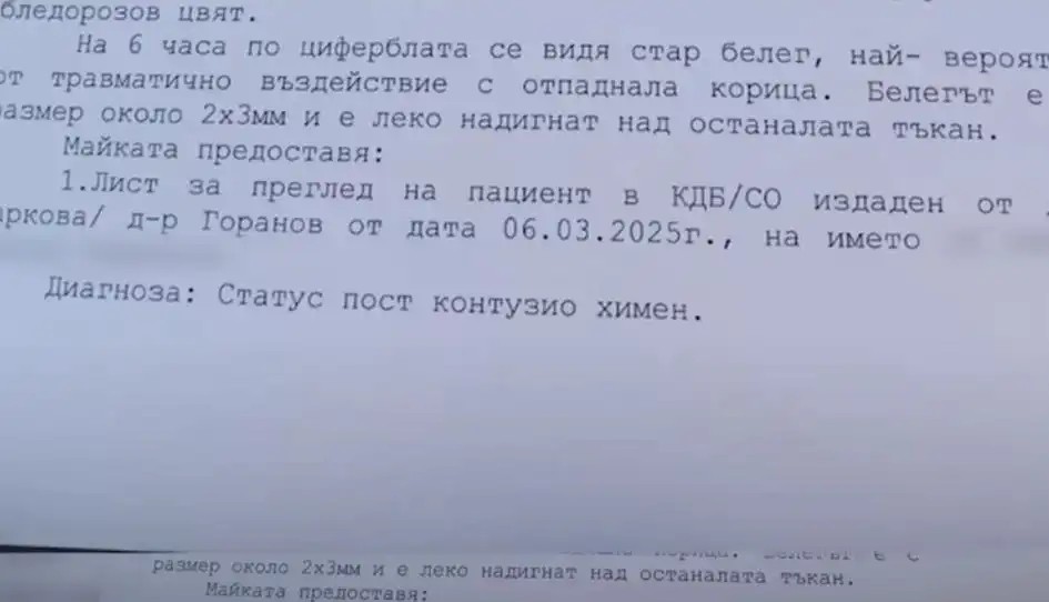 Преглед в "Съдебна медицина" в Бургас потвърждавал травмите на детето, каза бащата.