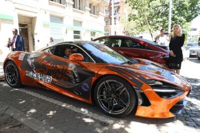 Оранжевият Макларън е облепен със стикери, изобразяващи Бойко Борисов и Делян Пеевски. От "Величие" се появиха с този автомобил и с ферари през юли и ги паркираха пред парламента. Обясниха, че им били "дадени за временно ползване от бизнесмен". Автомобилът бе предоставен на партията от Светослав Илчовски.