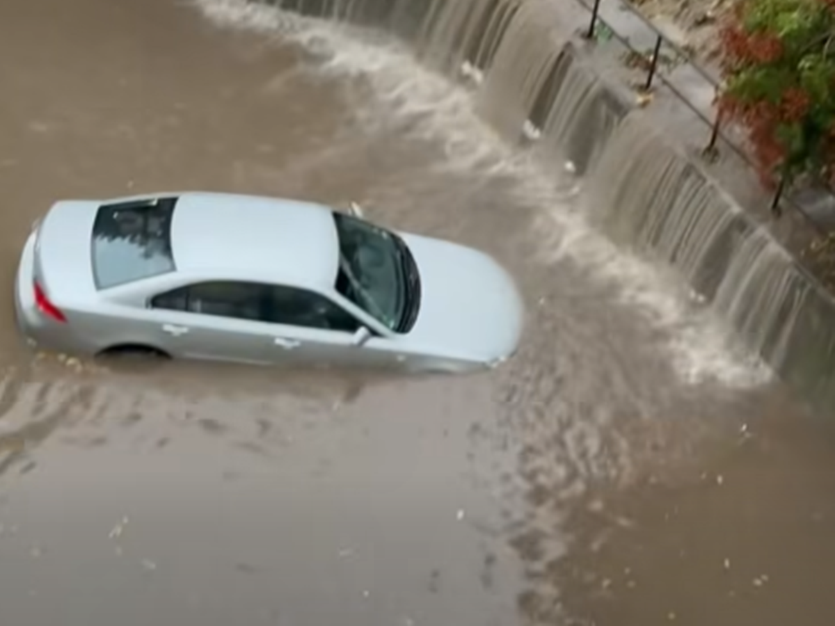 На кадри разпространени от Меteo Bulgaria се вижда как коли "плуват" в ж.к. "Меден рудник" в града.