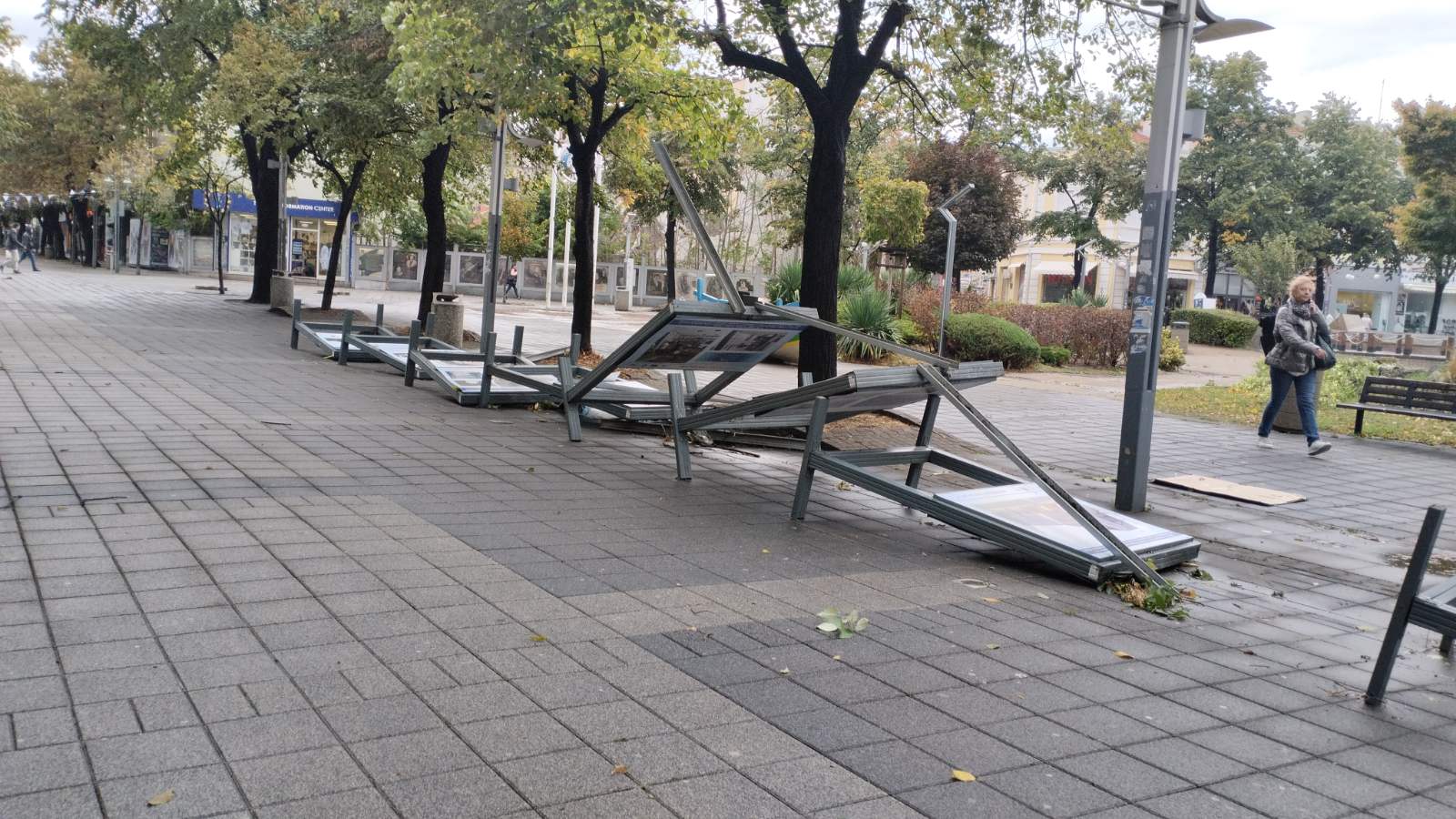 В морската градина в близост до сградата на измервателната станция има огромен паднал клон. На Славейковото пазарче има паднали тръби. А, по улица Асен Златаров ВиК ремонтни дейности, разкопаните части извират и няма как да се продължи ремонтните действия.