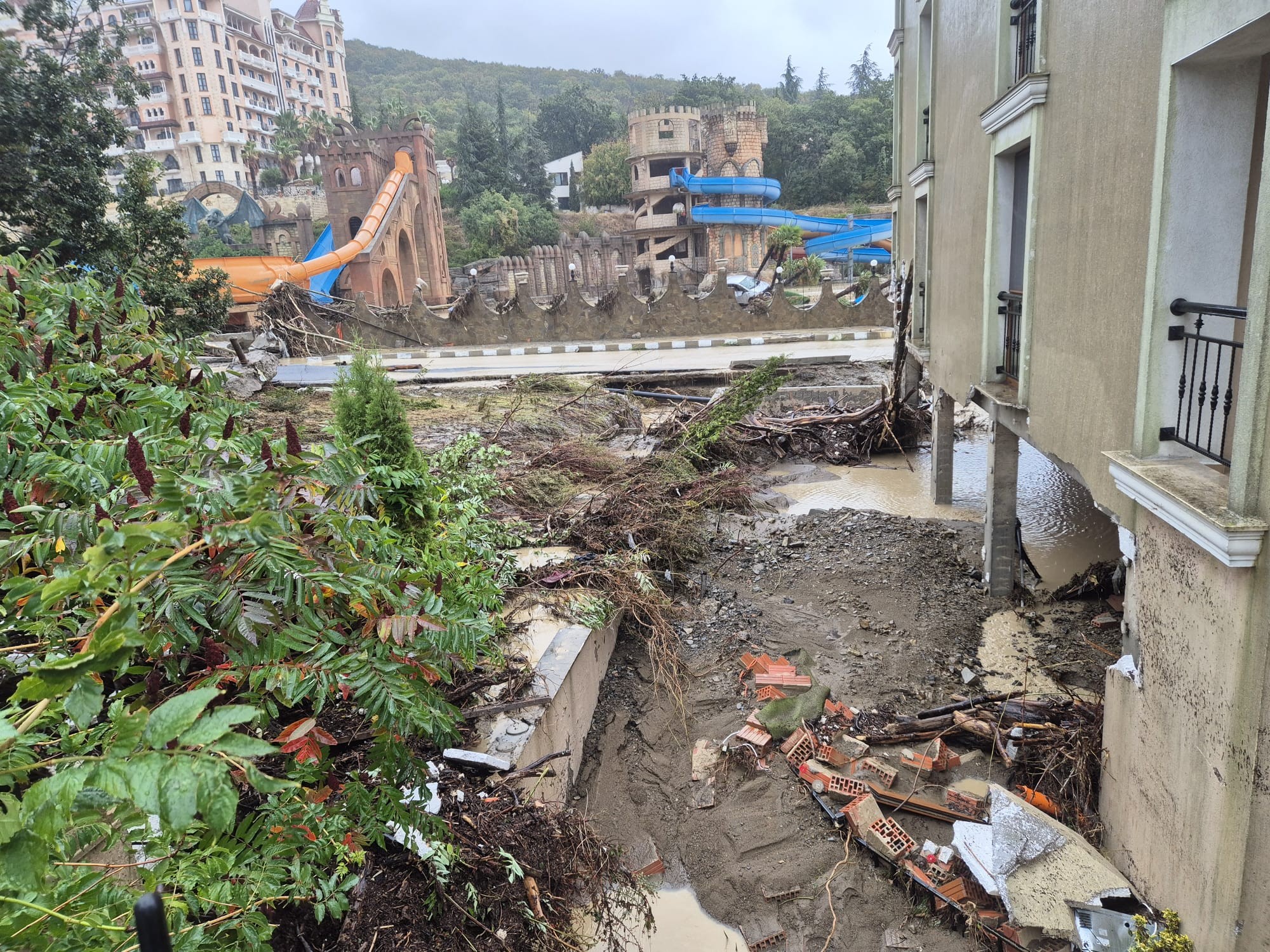 Част от тях се евакуираха, качвайки се на покрива на сградите. В комплекса има десетки еднофамилни вили, които са на два етажа. Водната стихия буквално е преминала през партерното им ниво, достигайки почти до тавана, казаха наши източници от епицентъра на бедствието.