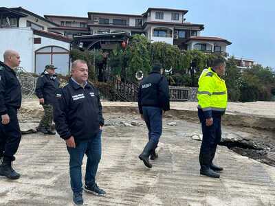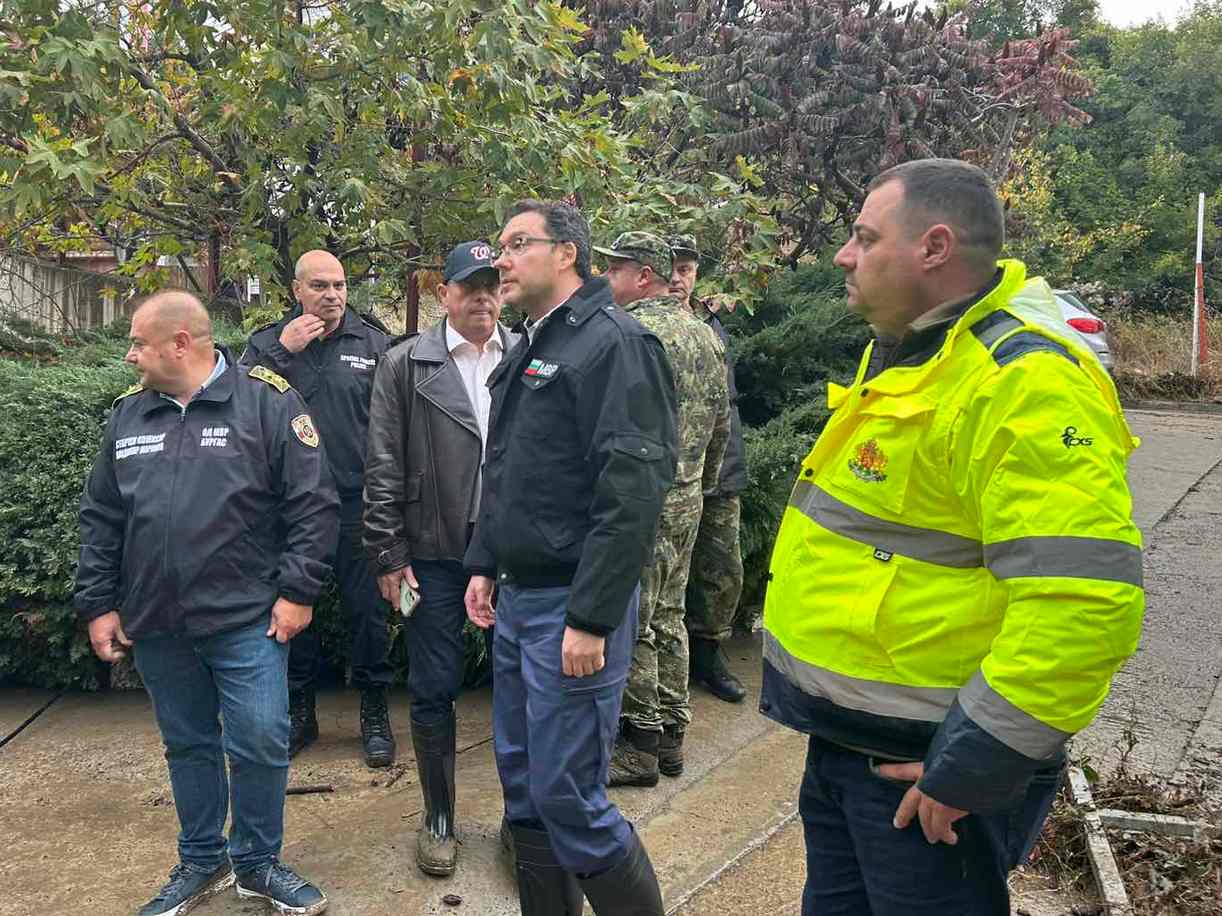 Министърът на вътрешните работи Даниел Митов, областният управител на Бургас Владимир Крумов, директорът на ОД на МВР в Бургас ст. комисар Владимир Маринов и ръководители на други държавни институции току-що започнаха оглед на ваканционно селище Елените, което бе буквално пометено при днешното наводнение.