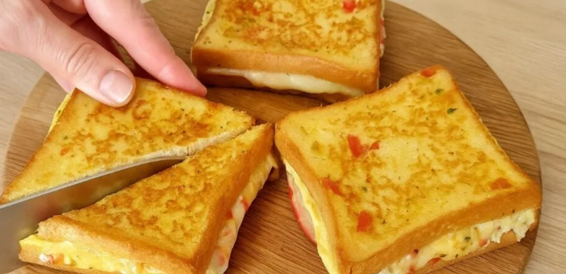 Когато имам нужда от наистина бърза и засищаща закуска, която да ме зареди за целия ден, това е моят пръв избор. Това е гениално сливане на омлет и запечен тост, приготвено светкавично в един тиган. Без излишни съдове, без сложни процедури. Резултатът е хрупкав отвън, пълен с разтопен кашкавал и сочни зеленчуци отвътре. Абсолютен деликатес!