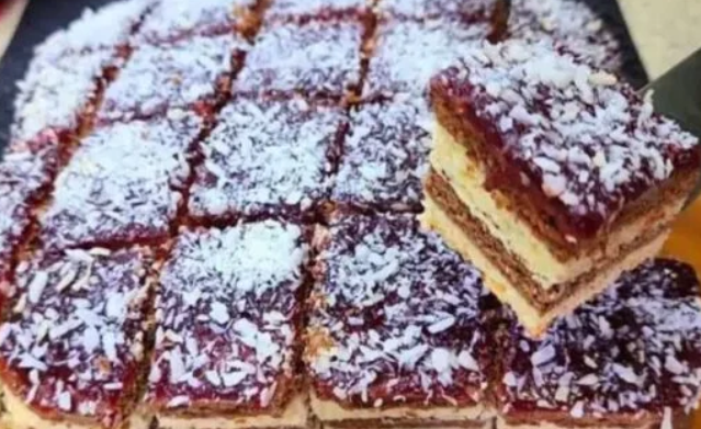 Последни щрихи: Изваждаш готовия сладкиш и го оставяш да се охлади напълно. Като изстине, махаш формата и хартията, и с нож изрязваш неравните крайчета. Мажеш отгоре обилно със сладко от вишни, заравняваш и поръсваш с кокосови стърготини.