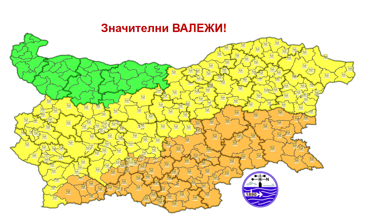 Можете да следите интерактивната карта за издадените предупрежденията за следващото денонощие на адрес https://weather.bg/obshtini/index.php?z=u