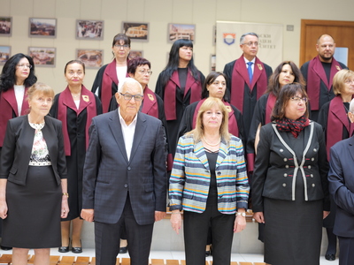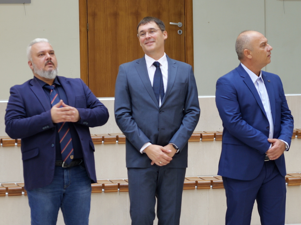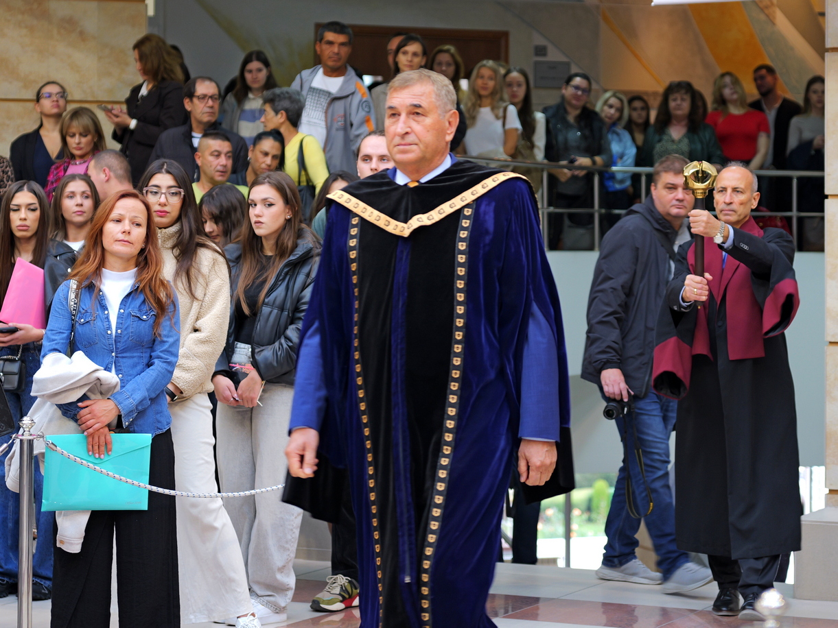 В приветствието си към препълнената Аула ректорът проф. Милен Балтов съобщи, че БСУ е част от алианс, с още 12 висши училища от ЕС и стартира уникален проект.