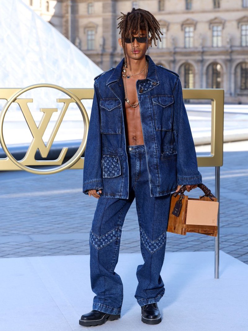 Синът на Уил Смит носеше сиви дънки, пуловер в същия цвят, дълго палто, маратонки Celine за 1050 долара и слънчеви очила Jacques Marie Mage за 1185 долара.