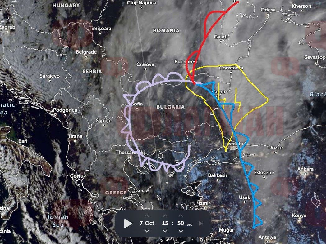 Студеният атмосферен фронт приближава Черноморието, предупреждава Meteo Balkans. Изданието публикува карта, за да покаже къде ще е най-голям риска от гръмотевични бури.