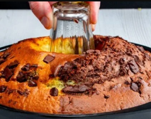 Слагам една чаша в тавата и правя най-хубавия и пухкав двуцветен кекс