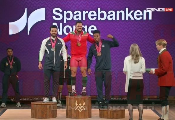 Карлос Насар спечели третата си световна титла по вдигане на тежести в норвежкото градче Фьорде. Макар и да остана без медал в изхвърлянето и на голяма дистанция от иранеца Алиреза Моени Седех, той успя отново да завоюва златото с двубой от 395 килограма. Подобри и световния рекорд в изтласкването.