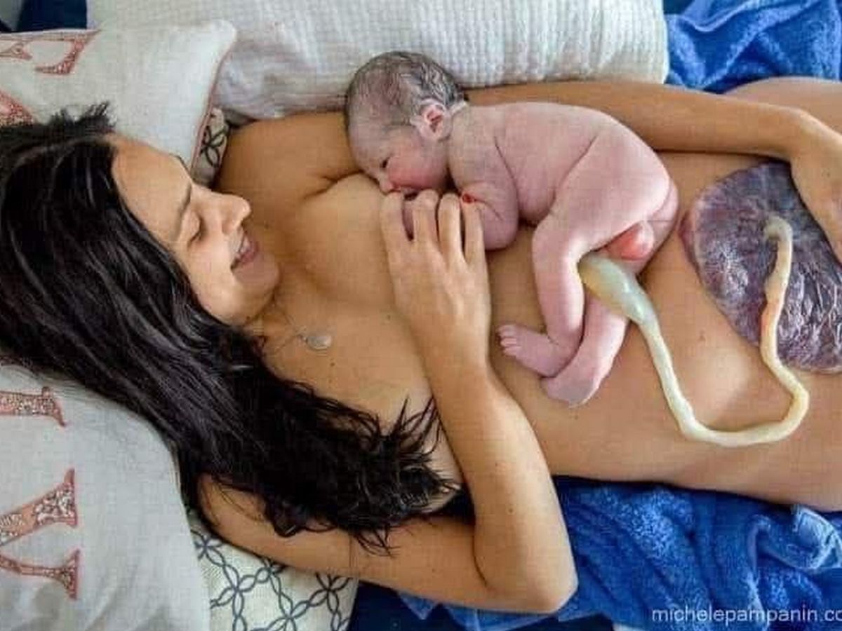 И сега не говоря само за положителни чувства между майката и детето, но и за прехвърлянето на кръв от плацентата. Една четвърт от кръвта на новороденото е все още в плацентата по време на раждането и ако оставим пъпната връв непокътната поне в следващите 25 минути, новороденото ще поеме останалата кръв и няма да страда от анемия, както често се случва.