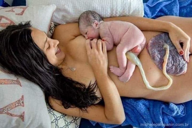 – В социалните мрежи се разпространяват и снимки, на които плацентата стои върху корема на майката, без пъпната връв да е прерязана. Това реална практика ли е?
