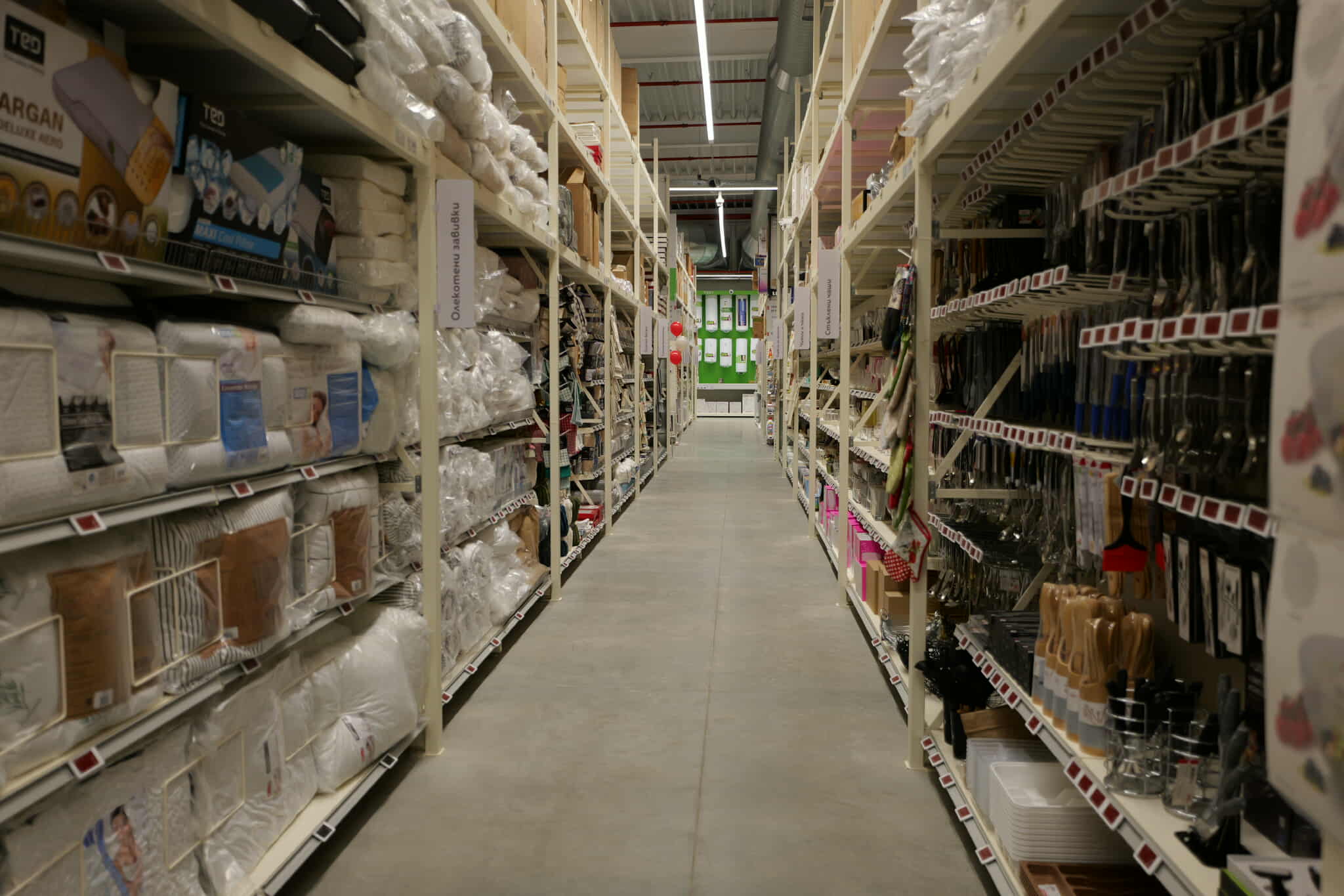 Вътрешното пространство е организирано така, че да осигурява бърза ориентация за клиентите. Търговската зала включва три касови зони, информационен център и кафе зона за посетители, а складовата част е проектирана за ефективно зареждане и обслужване.