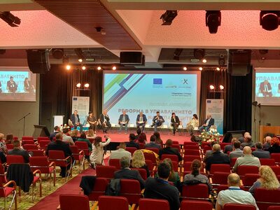 Кметът на община Поморие Иван Алексиев взе участие в дискусионния панел, посветен на реформата в управлението на отпадъците. Той представи иновативния за страната проект, съфинансиран от Програма LIFE на Европейския съюз – „Холистичен подход за управление на отпадъците в прехода към кръгова икономика“. Представените цели, етапи и постигнати резултати в Поморие по проекта за внедряване на иновативен подход в управлението на отпадъците, включващ въвеждане на нова и по-справедлива система за заплащане на услугата за битови отпадъци на база на количеството изхвърлени отпадъци, предизвикаха огромен интерес сред присъстващите.