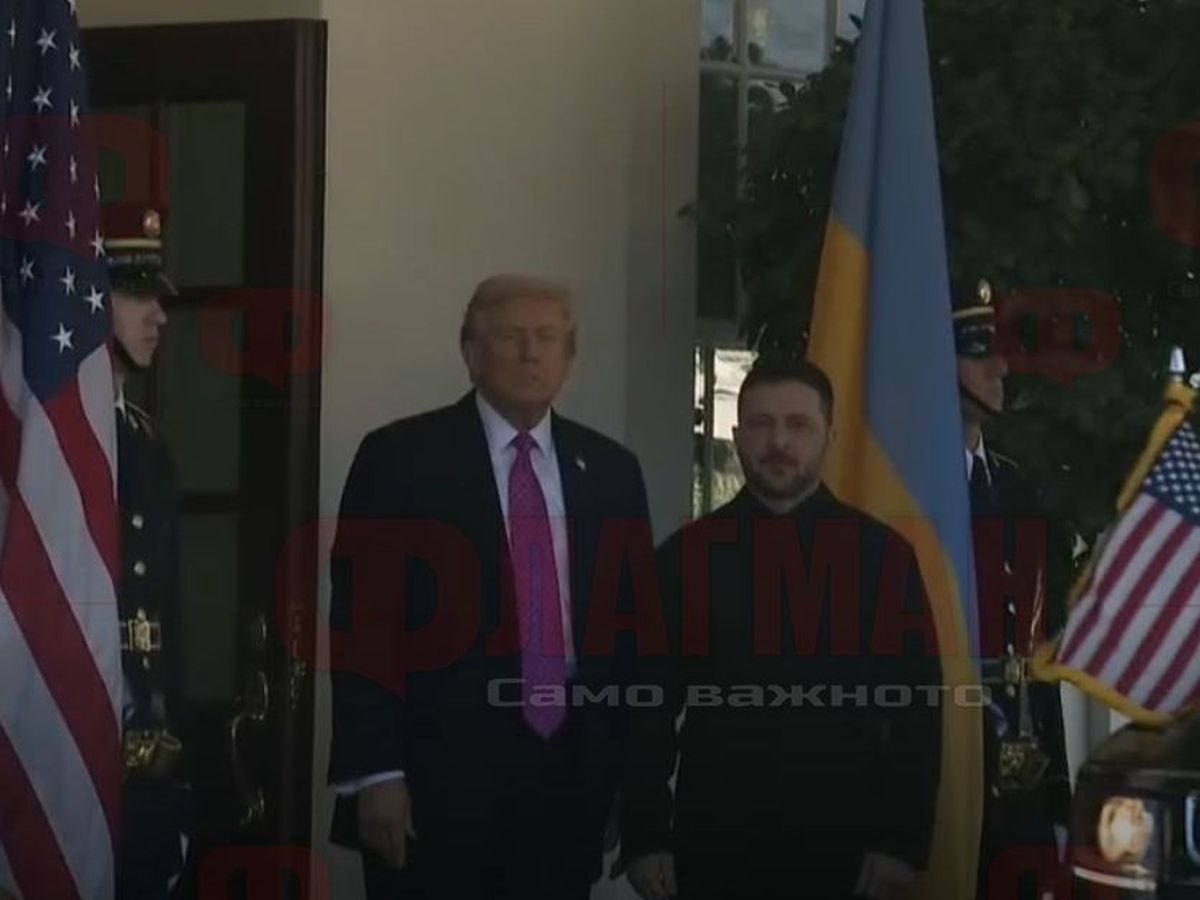 Зеленски влезе в сградата с голямо закъснение, посрещнат от Тръмп. Какво си казаха двамата пред портата остава загадка. След като US президента потупа приятелски европейския си гост, двамата влязоха в Белия дом и седнаха на голяма маса. Украинският лидер остана с гръб към камерите.