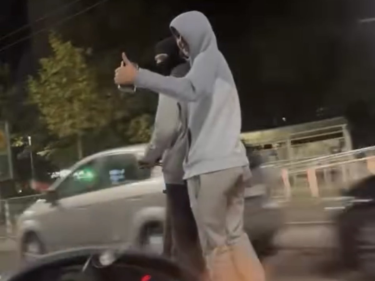 На първото видео изпратено до нас в 21:27 часа се виждат трима младежи, които спокойно се движат по кръговото кръстовище при хотел „Мираж“. Скоростта им не може да бъде точно определена, но от кадрите е видно, че не е ниска. Един от водачите е без предпазна каска - нарушение, което само по себе си е основание за санкция според Закона за движение по пътищата.