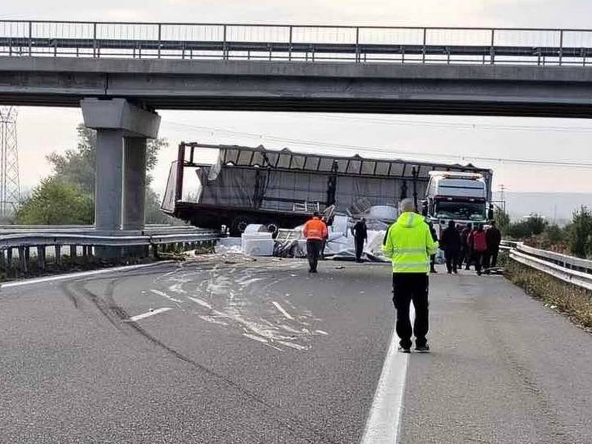 Камион с тоалетна хартия катастрофира и блокира движението по АМ "Марица"