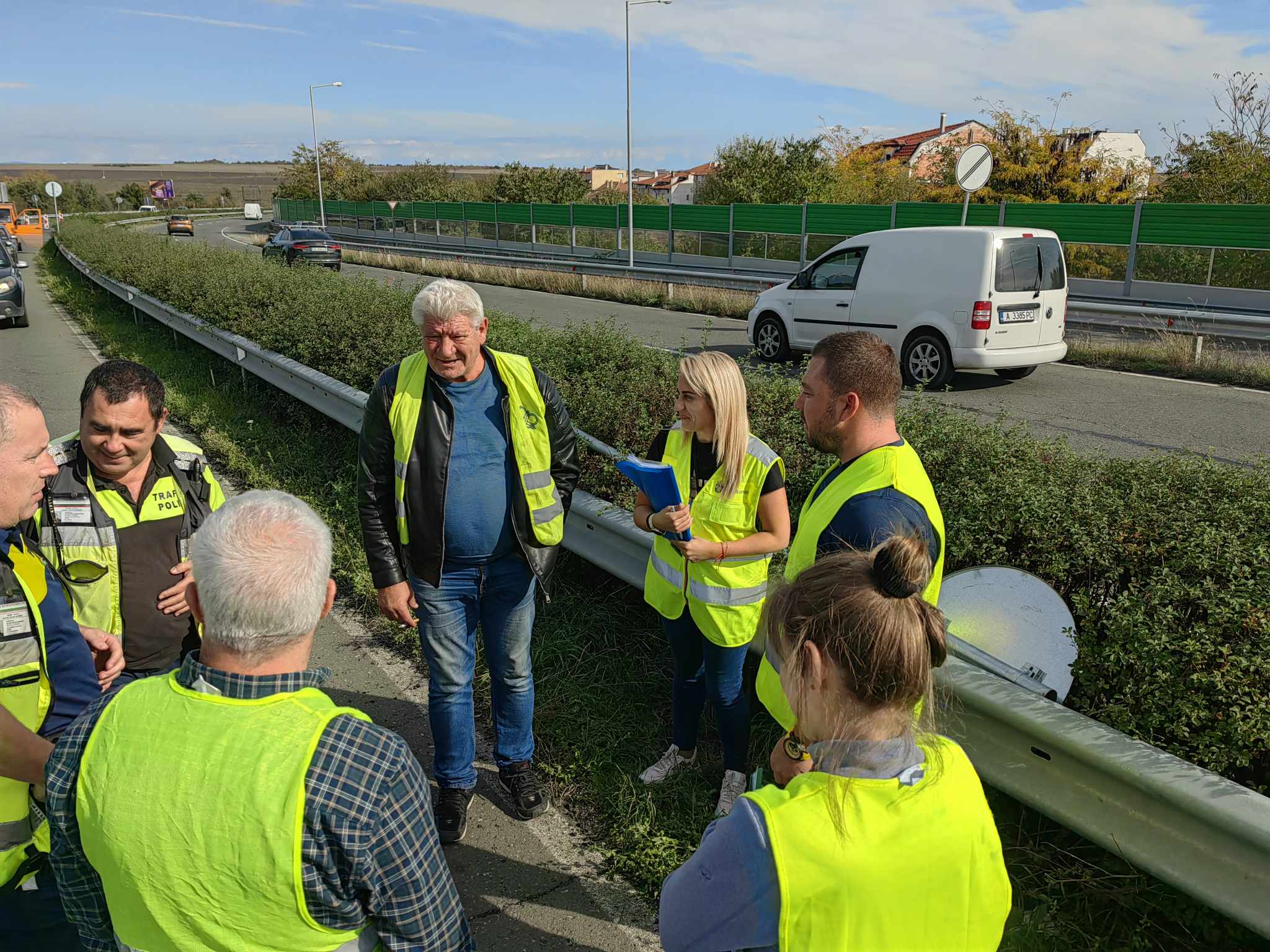 Току-що строителни работници от фирма "ЕИВ" ООД, съвместно с "Пътна полиция" и Община Бургас въведоха временните мерки за движение. До 13 декември трафикът ще преминава в обратното пътно платно за движение - от пътния надлез до летище "Бургас" до този за Каблешково (няколко стотин метра преди аутлета).