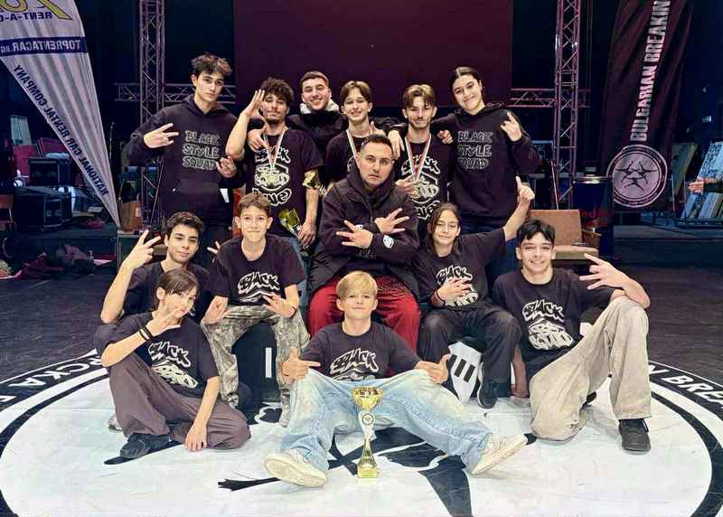 Момчета и момичета от „Бляк Стайл Скуад“ с треньор Ицо Черния на челни места на състезанието на Funk busters