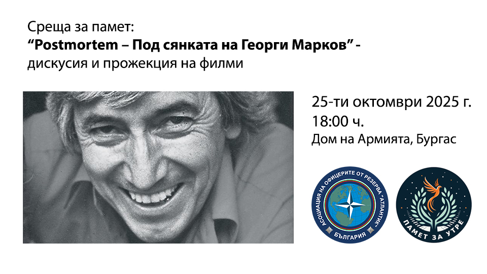 Утре в 18 часа в Дома на българската армия на бул. "Христо Ботев" ще бъде излъчен вълнуващ филм, посветен на личността и делото на Георги Марков – писател, драматург и символ на свободната българска мисъл.