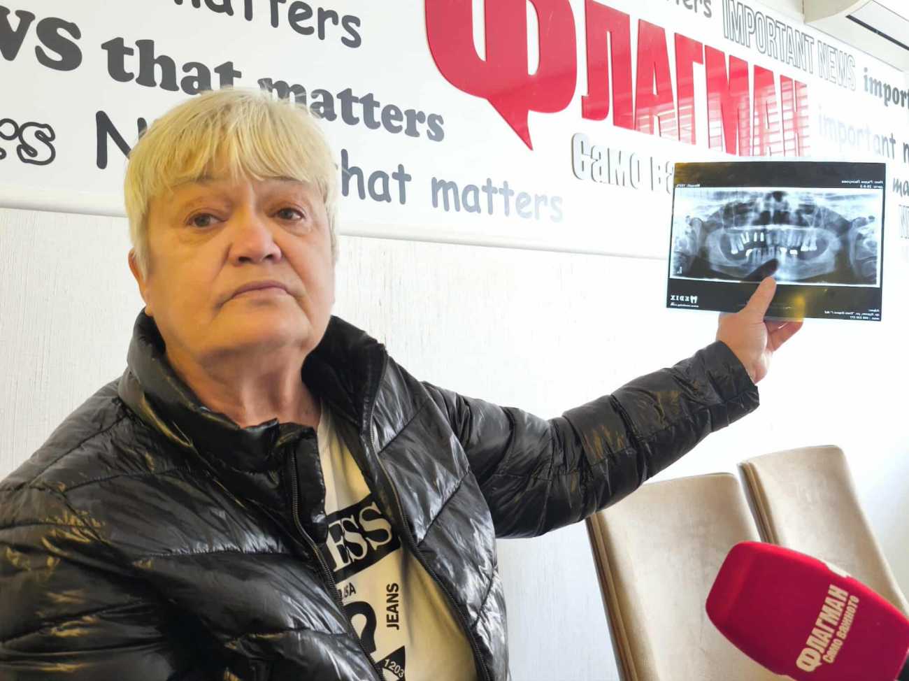 „Бургаски зъболекар ми сложи четири импланта – два от тях се оказаха накриво, единият падна, а другият се клати. Това ми създава страшни проблеми. Устата ми е изкривена. От месеци не мога да се храня нормално. Чувствам постоянни болки.“ С тези думи започва разказа си пред Флагман.бг 61-годишната Радка Лазарова.