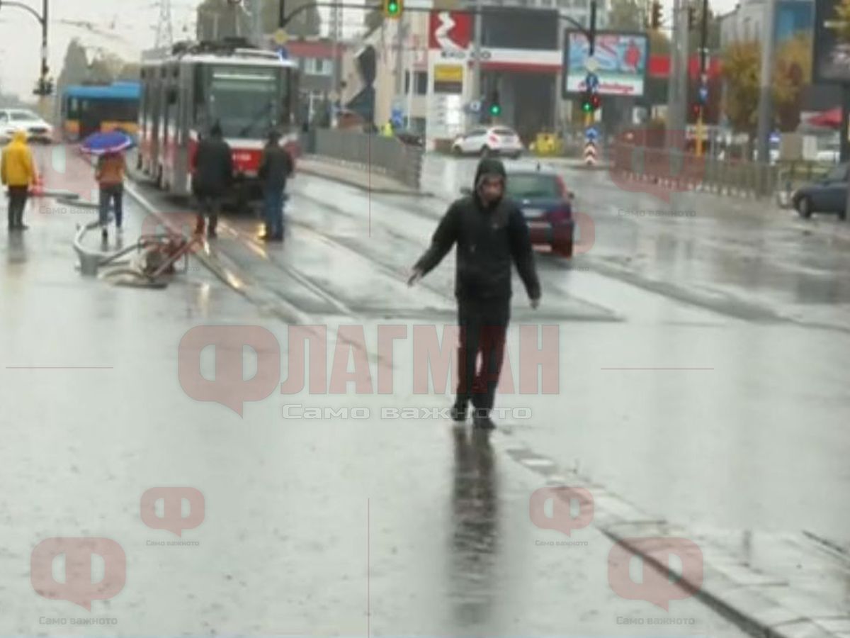 Трамваи спряха заради потопа в София и хората вървяха пеша
