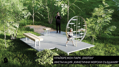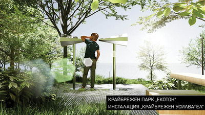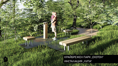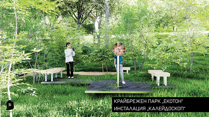 В участъка след изгледната тераса посетителите на парка ще могат да открият деликатно вписани в парковата среда в сянката на едроразмерна растителност подиуми от поцинковани скари с Интерактивни инсталации. Подходът към подиумите ще е щадящо изграден с посипка от мулч, а самите ажурни подови скари няма да възпрепятстват растежа на растителност под тях. Сред инсталациите са “Вятърна арфа”, "Ксилофон", “Панорамен бинокуляр”, “Лупа”, “Кинетични морски създания”, “Калейдоскоп“, “Крайбрежен усилвател”, "Тръбни камбани", "Ехото на папурите".