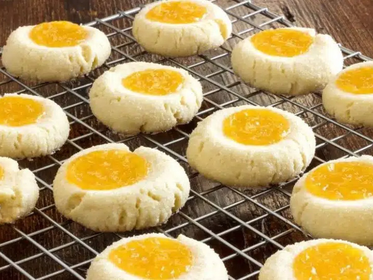 4. С помощта на лъжица, сладкарска торбичка или торбичка с отрязан ъгъл напълнете всяка дупчица с около ½ чаена лъжичка лимонова извара. Работете с един лист наведнъж, поставете във фурната и печете до леко златисто по краищата, 10 до 12 минути. Прехвърлете върху решетка, за да се охлади напълно. Повторете, докато всички бисквитки се оформят и изпекат. Съхранявайте в херметически затворен контейнер до 4 дни.