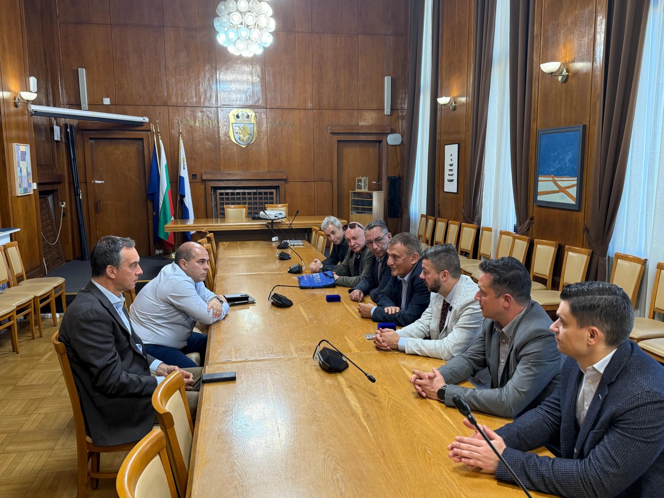 На срещата присъстваха арх. Борислав Владимиров – председател на КАБ, арх. Петър Диков – председател на САБ, арх. Мирослав Бойчев – зам.-председател на УС на КАБ, арх. Събин Попов – председател на регионалната колегия на КАБ в Бургас, арх. Емил Бурулянов – председател на регионалната колегия на САБ в Бургас.