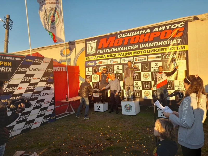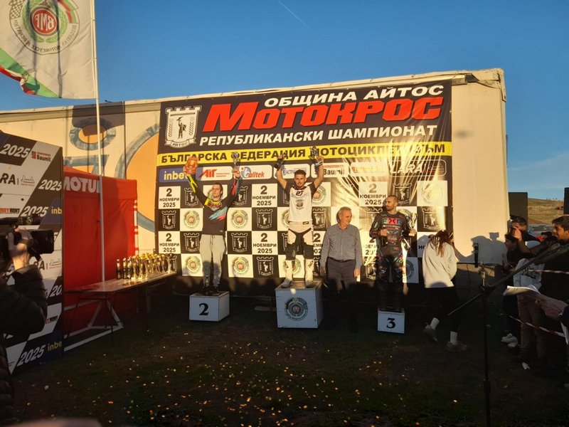 Финалният кръг на Републиканския шампионат по мотокрос в Айтос определени шампионите на България. Двама айтозлии се качиха на най-високото стъпало на почетната стълбичка. Успеха на айтозлията Живко Богданов - който доказа, че е най-добрият пилот в клас МХ 1 и грабна безапелационно шампионската купа. Другият айтоски шампион е Калчо Димов, който заслужи злато не в един, а в два класа - в МХ S и МХ S +55.