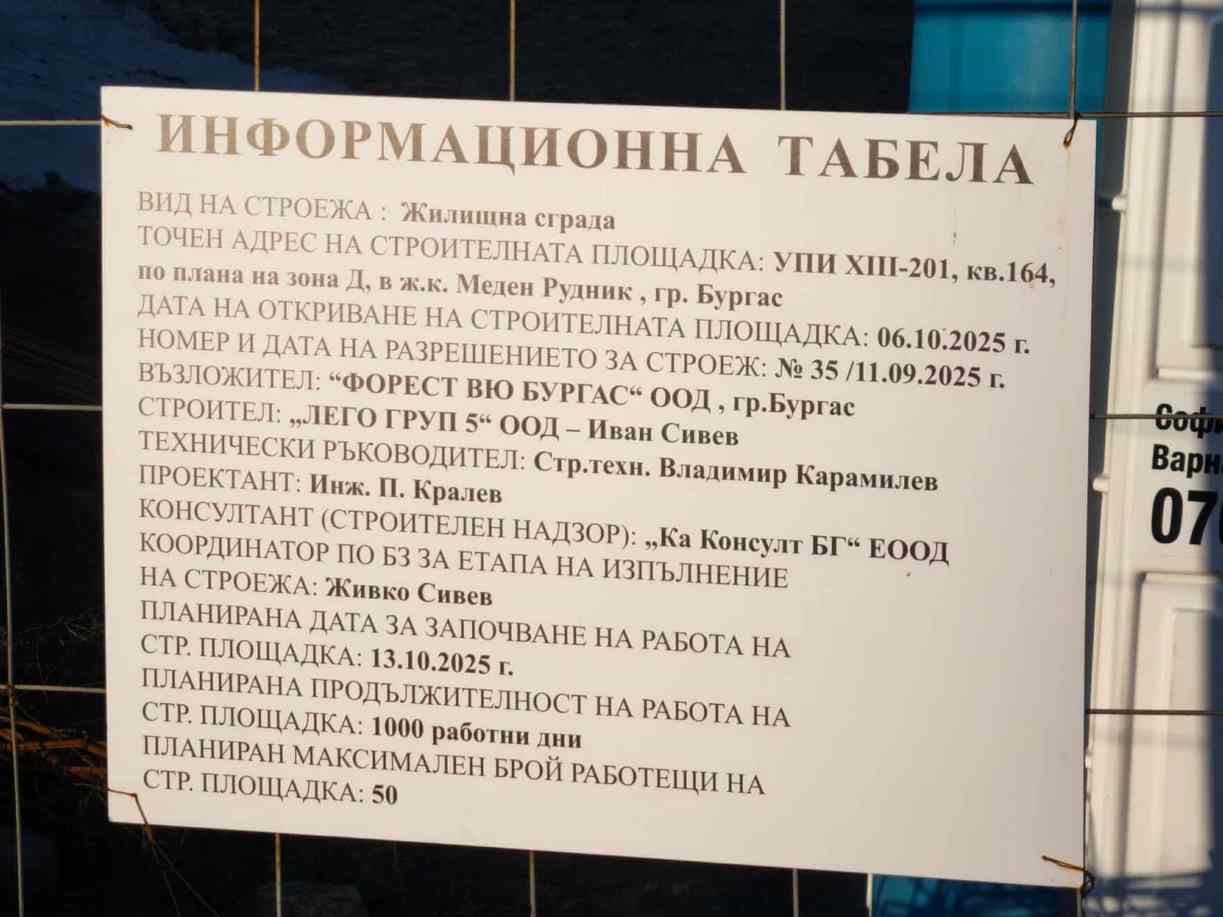 Строител е „Лего груп 5“ ООД на бургаския бизнесмен Иван Сивев, а изграждането ще продължи 1000 дни.