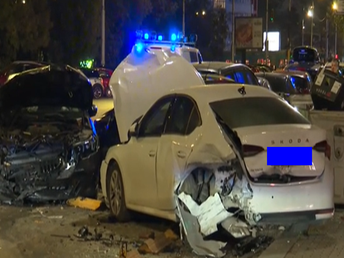 Кола помете шест паркирани автомобила на бул. "Витоша" късно снощи. Зад волана на мощния автомобил с 1,7 промила алкохол в кръвта е бивш член на управителния съвет на държавното дружество "Автомагистрали". Свидетели коментират, че се е чул силен тътен от удара.