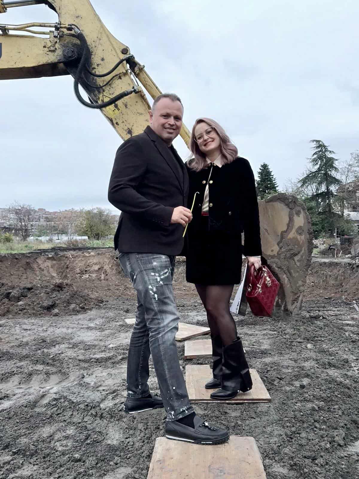 Първата копка бе направена с благословия от свещеник и в присъствието на инвеститорите Георги Кузманов и Диляна Кузманова.