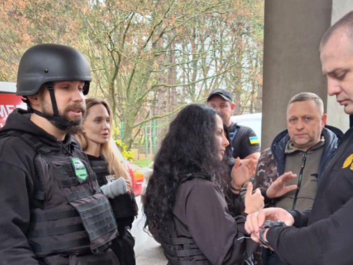 Американската актриса Анджелина Джоли, която е посланик на добра воля на УНИЦЕФ, направи изненадващо посещение в град Херсон в Украйна. Джоли беше облечена с бронирана жилетка.